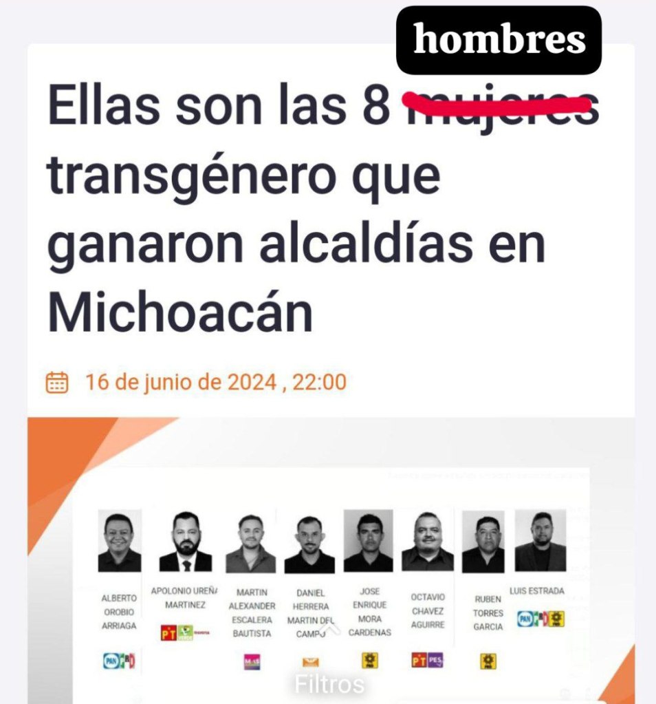 En las recientes elecciones municipales en el Estado mexicano de Michoacán, ocho hombres han logrado hacerse con las alcaldías, autoidentificándose como mujeres. Y no es ningún fraude, porque la ley de autodeterminación del sexo se lo permite. Esto significa que: