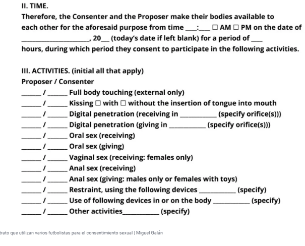 Recientemente, conocimos por parte del presidente del CENAFE el contrato de ‘consentimiento sexual’ que estarían usando futbolistas españoles y extranjeros, con el pretendido objetivo de blindarse frente a posibles denuncias por agresión sexual, sobre la base de una interpretación errónea de la ‘ley del sólo sí es sí’.