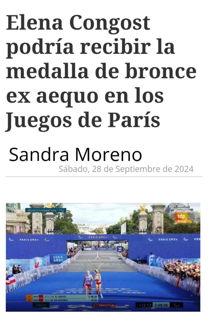 En un reciente avance sobre el caso de Elena Congost, atleta paralímpica española descalificada tras su participación en el maratón T12 de los Juegos Paralímpicos de París 2024, el Comité Paralímpico Español (CPE) y el Consejo Superior de Deportes (CSD) han propuesto que se le otorgue una medalla de bronce ex aequo junto a la atleta japonesa Misato Michishita.